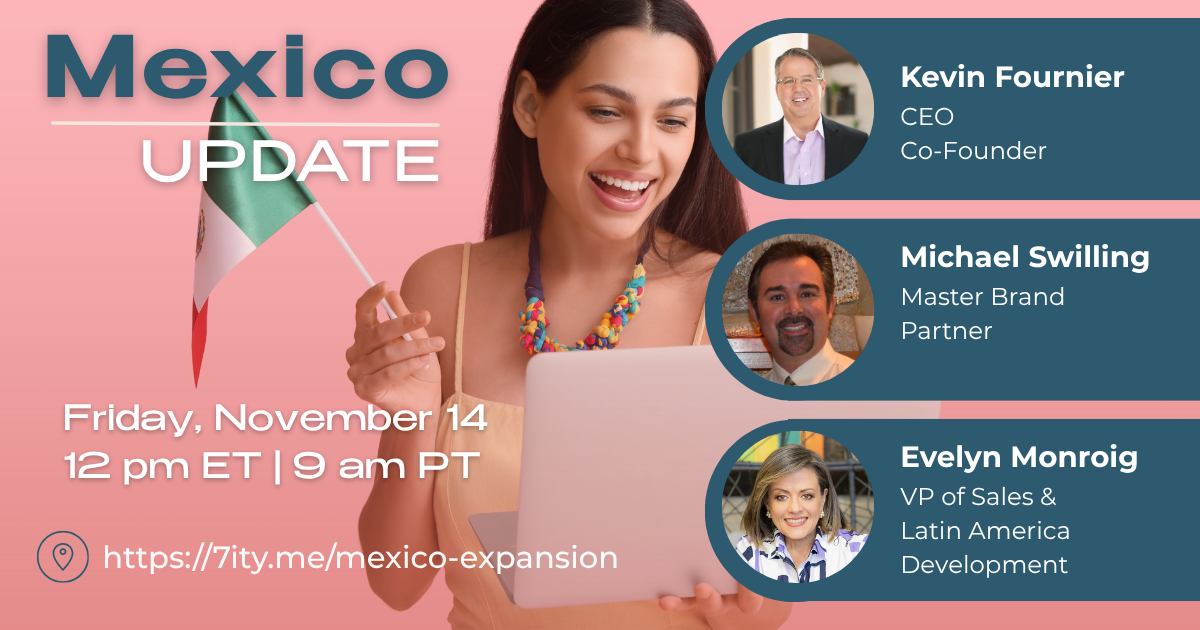 Join CEO Kevin Fournier, VP of Sales Evelyn Monroig and Master Brand Partner Michael Swilling. In this exciting event, learn about pricing, tools, and support in Sevinity's expansion into Mexico. We'll also cover topics like how to prospect and pre-market for our Mexican field. We'll be ending this event with an open Q & A for any topics that you'd like to discuss.